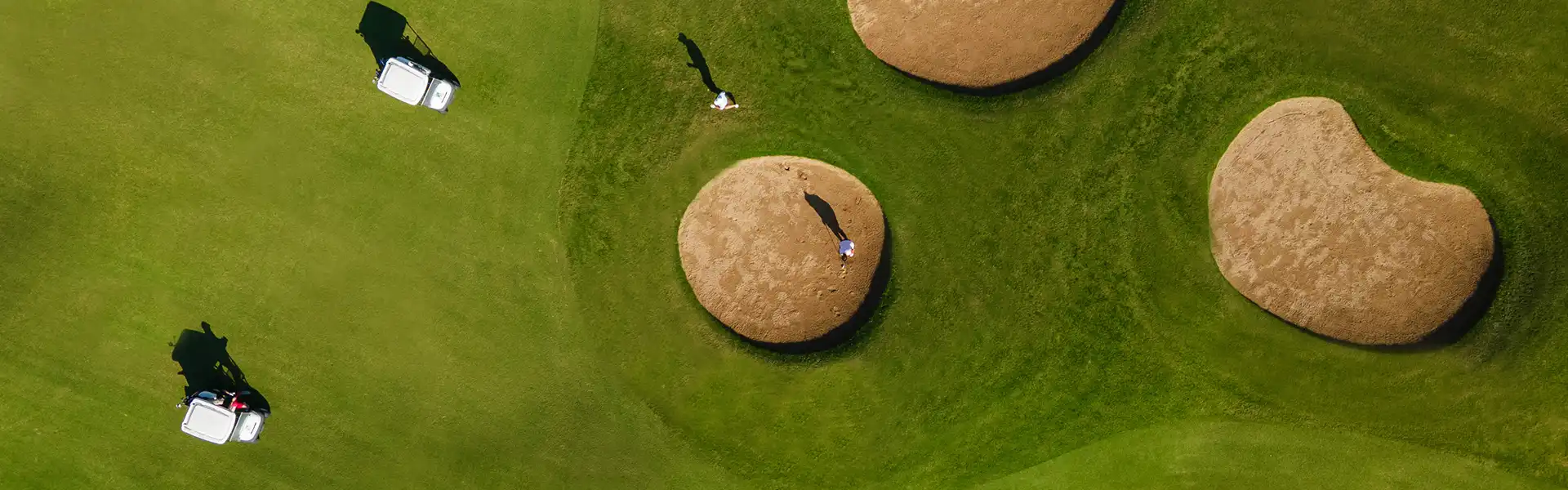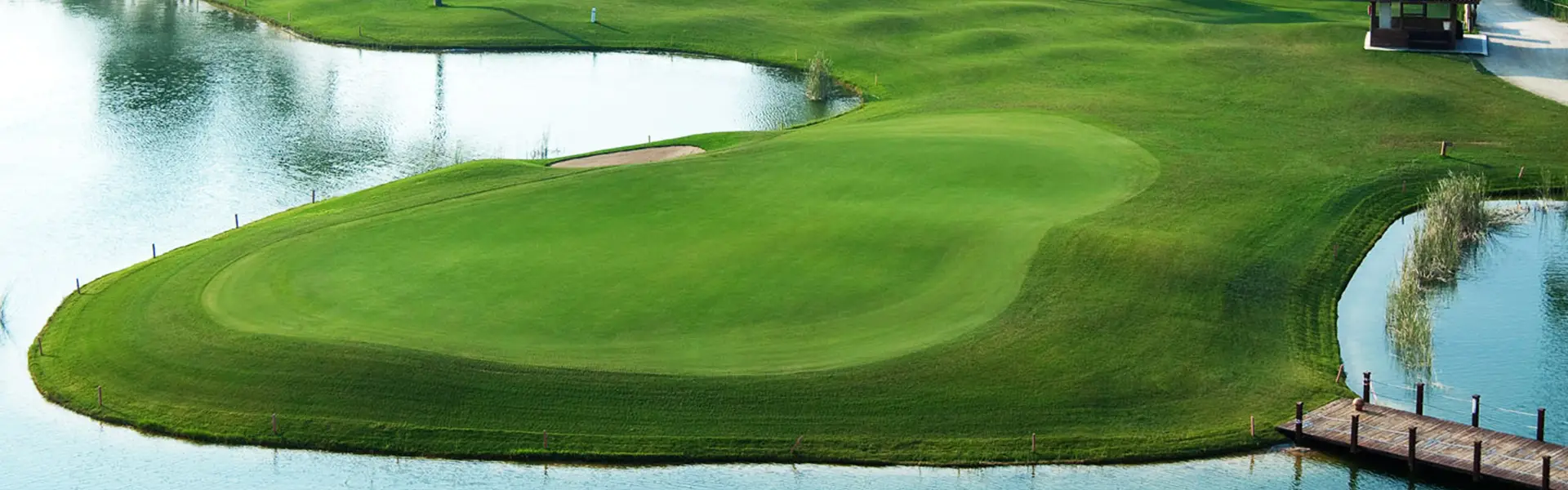 Greens, lakes, bunkers Approx. 560 m2, water hazards on 11 holes, 70+ bunkers, some very large